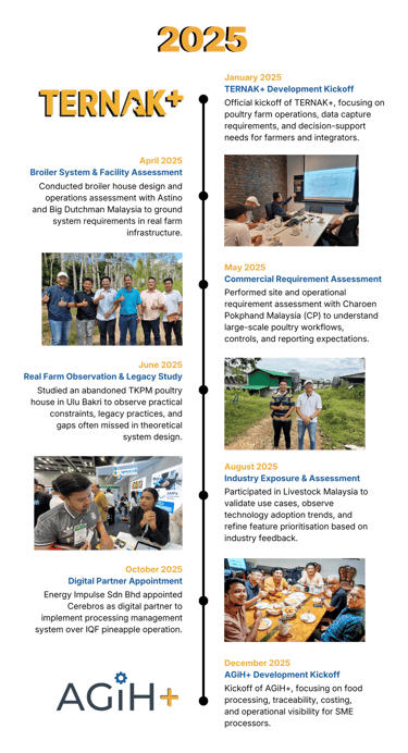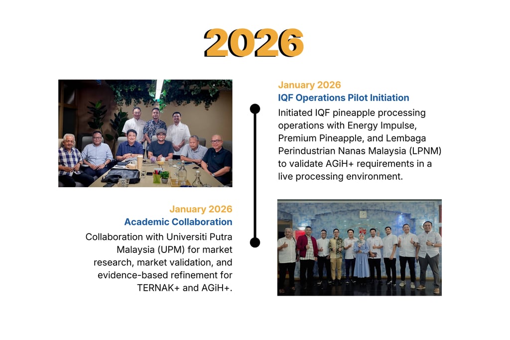 Our journey is shaped by real operations, not assumptions. Every milestone reflects how we validate problems on the ground, align with industry and regulators, and translate real requirements into practical digital systems for agri and food SMEs.